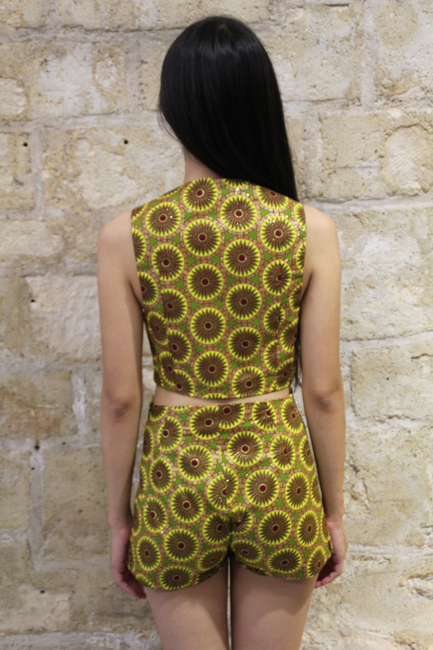 BUSTIER AND HIGH-WAIST SHORTS Gold Flower Wax
