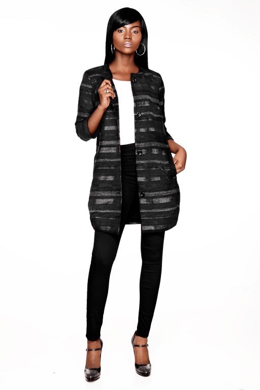 To wear with a round collar top and crop or slim cut pants.